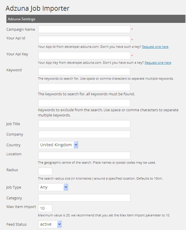 • Adzuna Settings