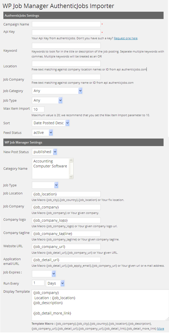 WP Job Manager AuthenticJobs Importer Plugin Import job from AuthenticJobs according to your given parameter.This is WP Job Manager Add-ons.